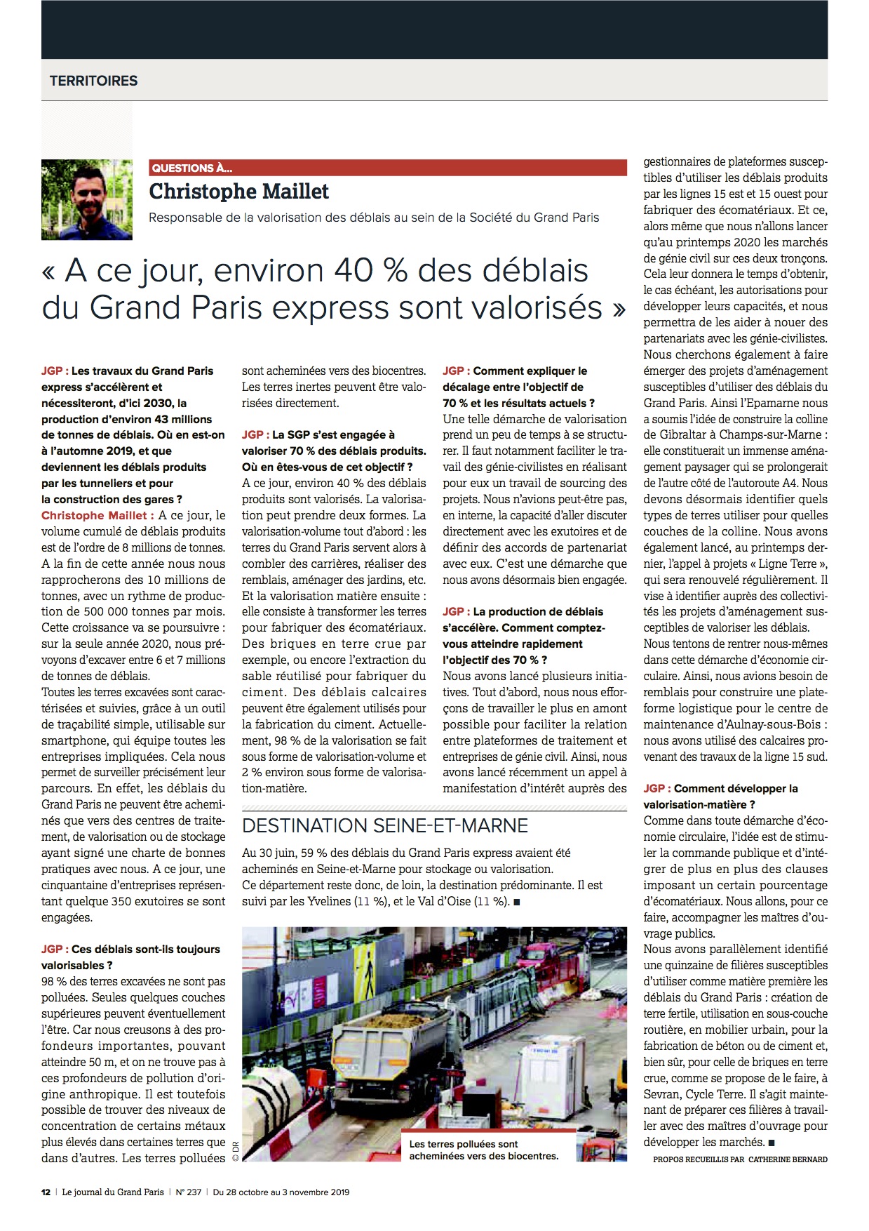 A ce jour, 40% des déblais du Grand Paris express sont valorisés
